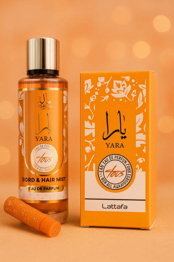 Yara Tous de Lattafa en perfume y bruma para el cabello.