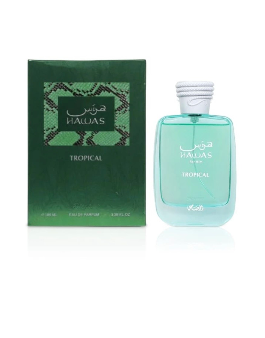Hawas Tropical combina la frescura de los frutos exóticos con la riqueza de las esencias árabes, ofreciendo un perfume vibrante, duradero y sofisticado que despierta los sentidos y deja una estela inolvidable.