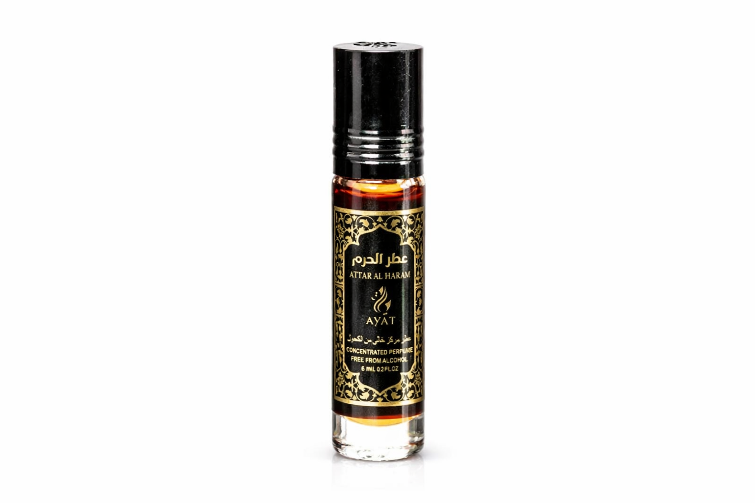 Attar Al Haram es un perfume concentrado de tipo attar (aceite perfumado) inspirado en el arte ancestral de la perfumería árabe, caracterizado por su fórmula sin alcohol, alta concentración aromática y larga duración. Este tipo de fragancia se basa en aceites esenciales y resinas, lo que ofrece un aroma profundo, rico y evolutivo según la química de la piel.